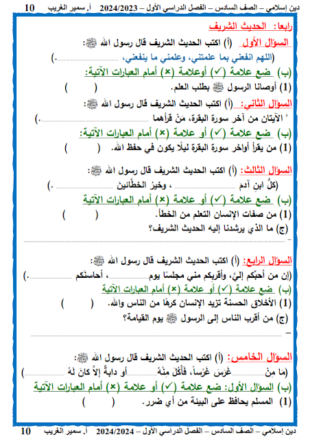 مراجعات ليالي الإمتحان للصف السادس كل المواد عربي لغات ترم أول2024